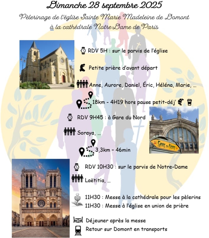Se retrouver pour une même cause ,un même pèlerinage de notre belle église Sainte Marie Madeleine à Domont à Notre de Dame de Paris .
