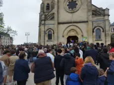 Des bancs avaient été disposés sur le parvis pour permettre à tous ceux qui n'avaient pas pu rentrer de suivre la célébration