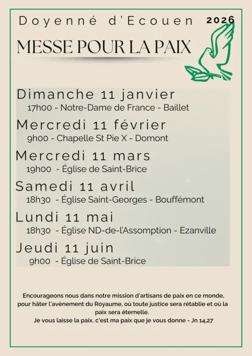 Messes pour la Paix dans le Doyenné au 1er semestre 2026