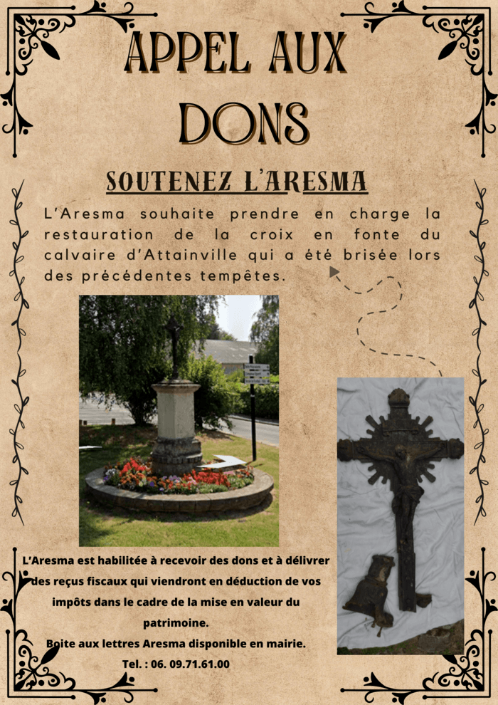 Nous comptons sur votre mobilisation pour faciliter la réalisation de ce projet en faisant un don à l'ordre de l'ARESMA à déposer dans la boîte aux lettres de la mairie.